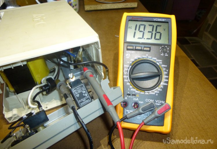 Прежде чем окончательно закрыть блок, померил на неиспользуемой вторичной обмотке напряжение — 19,36 В.