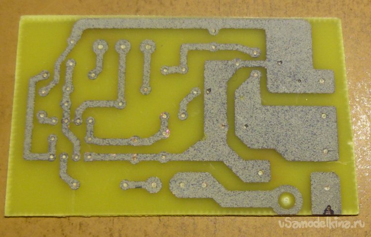Дальше метод “ЛУТ” мне в руки и… — плата после травления в хлорном железе (получается всё лучше).
