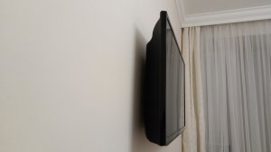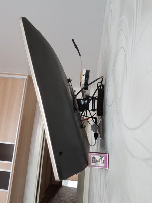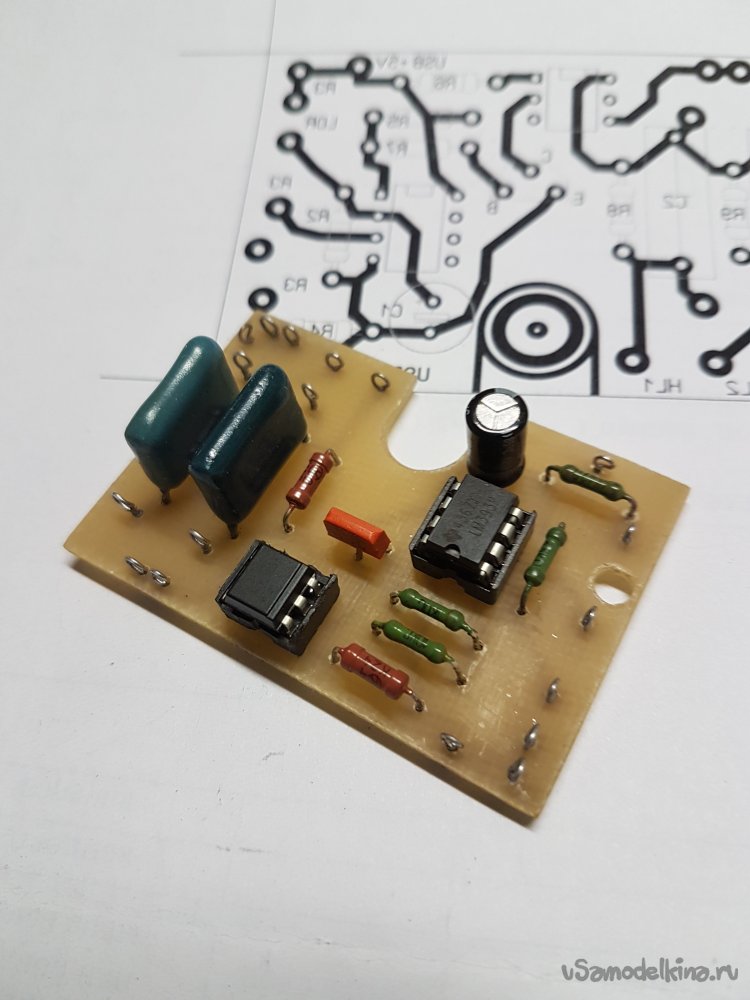 Всё это закреплено на деревянной рейке на треть короче корпуса ТВ и на его подвесе. Т.к. у меня ТВ расположен на высоте около 2 м и наклонен градусов на 25-30 к зрителю, блок фотореле расположен на расстоянии (до ламп) около 60 мм от стены и параллельно ей. Конечно за задней стенкой ТВ.
