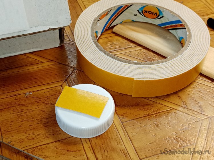 Потому в качестве постамента выбрал пробку. Закреплять можно при помощи двойного скотча для зеркал.