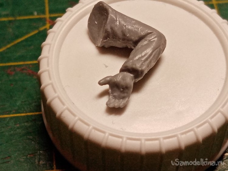 Трудно приделывать левую руку. Её еще нужно положить на колено. Но все подошло отлично.