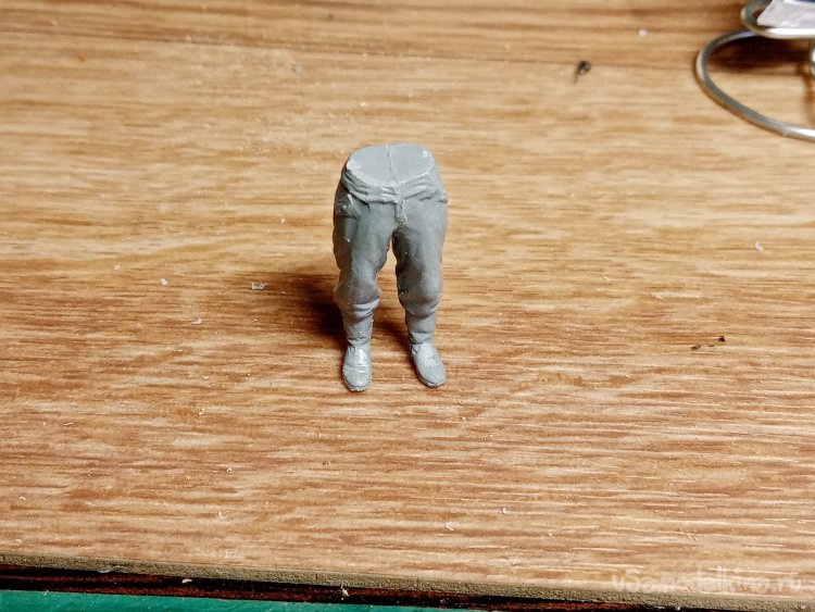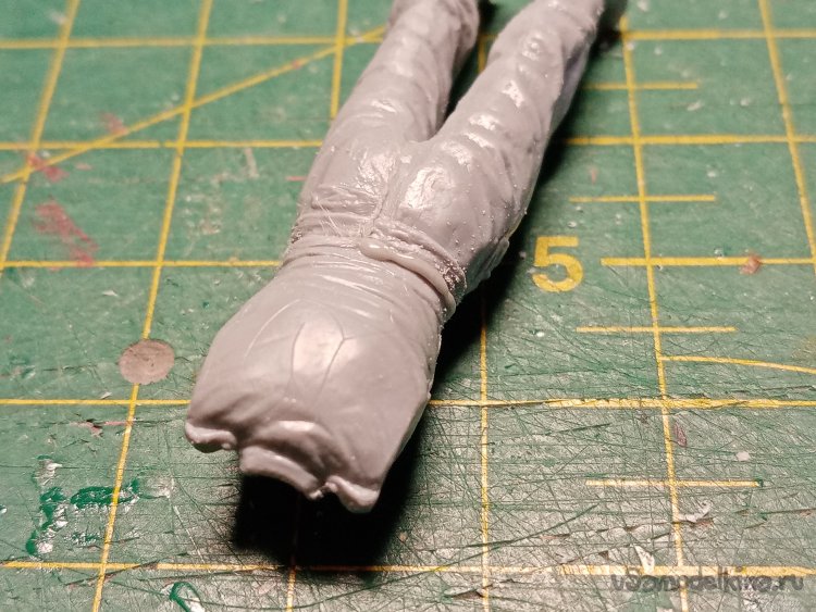 Собрал ноги. Подогнал подошвы. Прошкурил соединение с торсом.