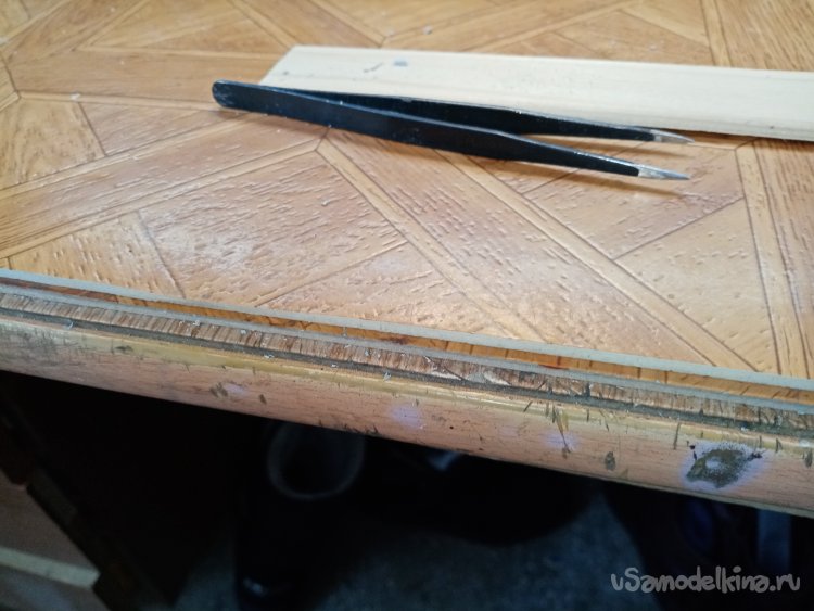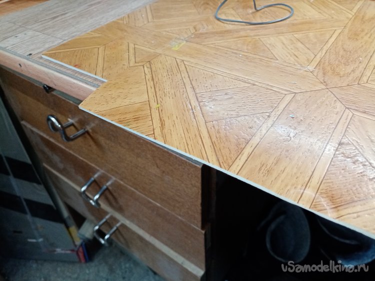 Есть тонкость. На стол укладываю несколько слоев линолеума. Для защиты. И сменный небольшой верхний коврик. Его край немного сдвигаю со столешницы. Край не так руки режет при длительной работе. Поскольку стараюсь всегда работать над столом. Мелкие детали такие прыгучие. Теряются на раз-два.