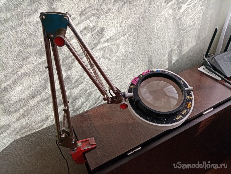 Самодельная лупа с подсветкой. Тоже сильно помогает. У нее большая глубина резкости, не нужно сильно наклоняться над столом.