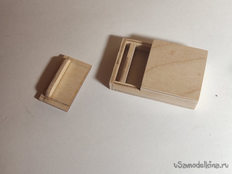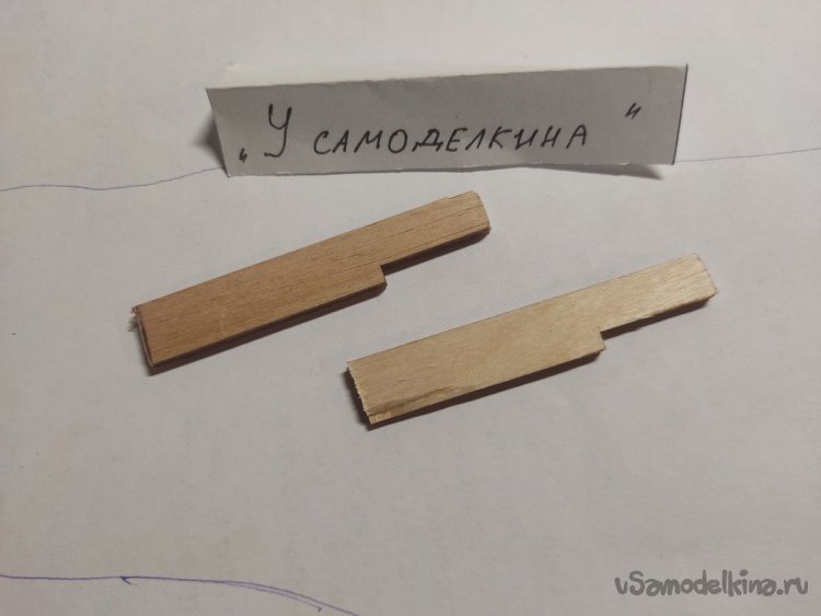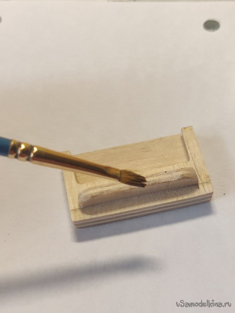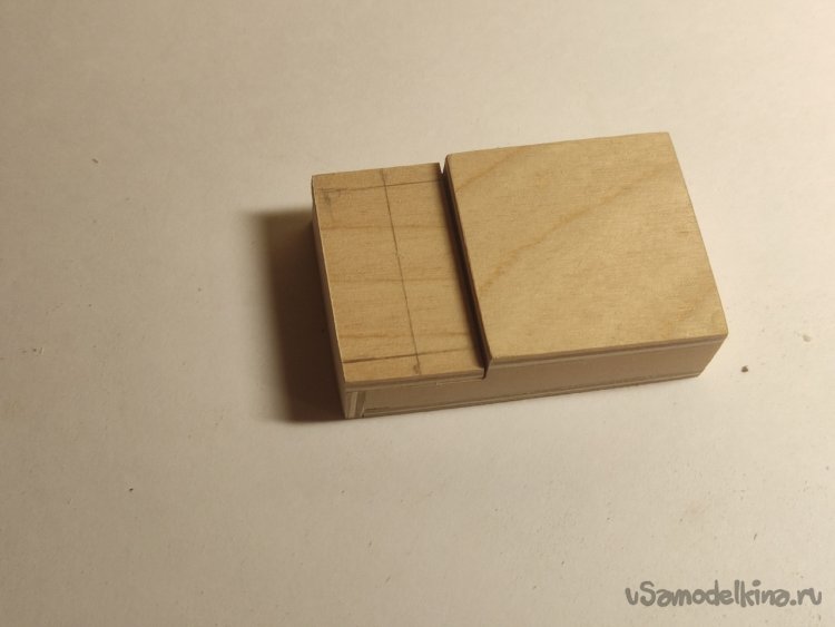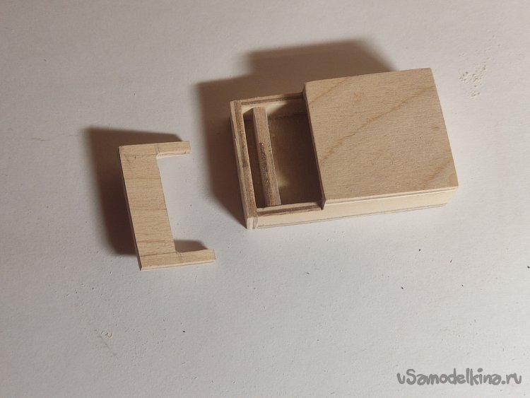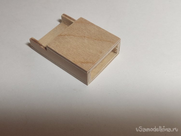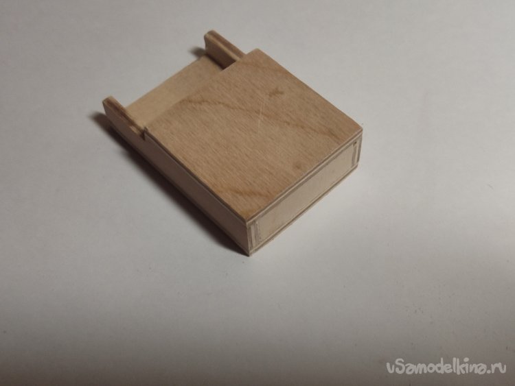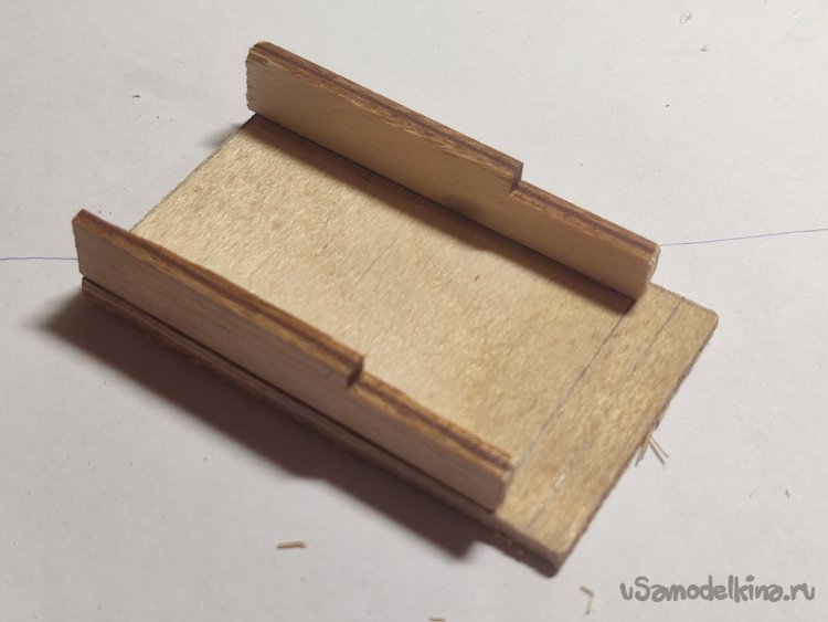 1)Приклеиваем на основание две боковые стойки , предварительно пропилив в них пазы для крышки коробочки .Кстати, советую всем оставлять припуски.