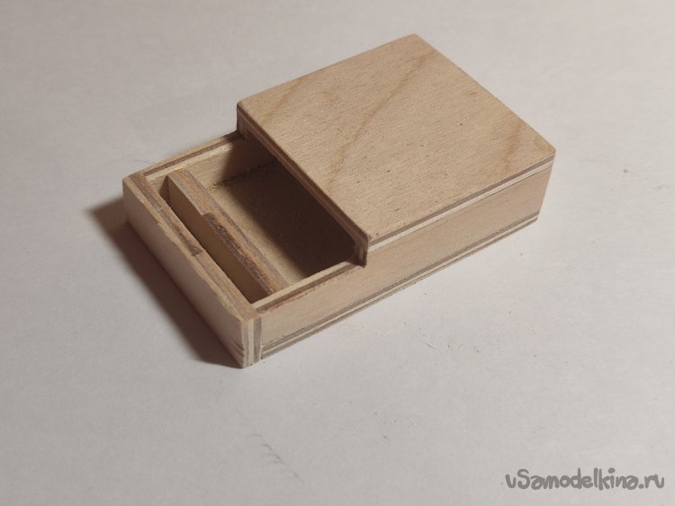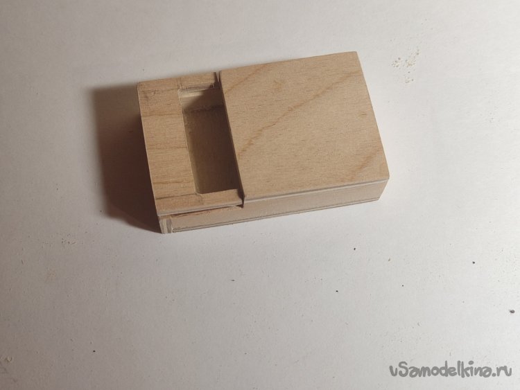 4) приклеиваем переднюю стенку а также вклеиваем полоску, которая будет удерживать крышку.