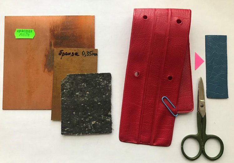3). Прямоугольный отрезок красной меди 95 х 50 х 1 мм.