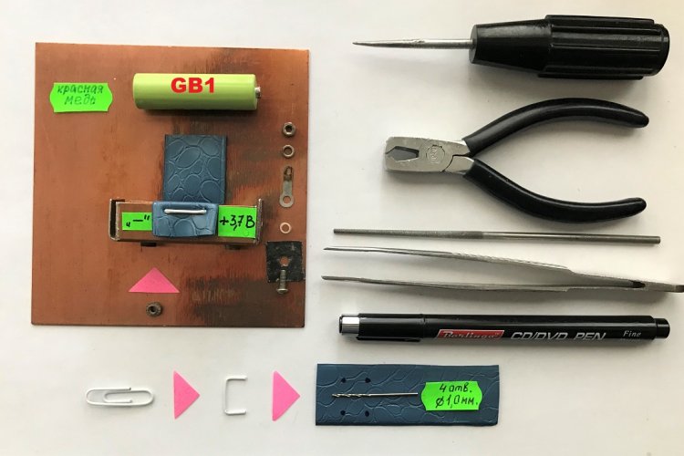 Материалы, необходимые для изготовления отсека – держателя аккумулятора GB1.