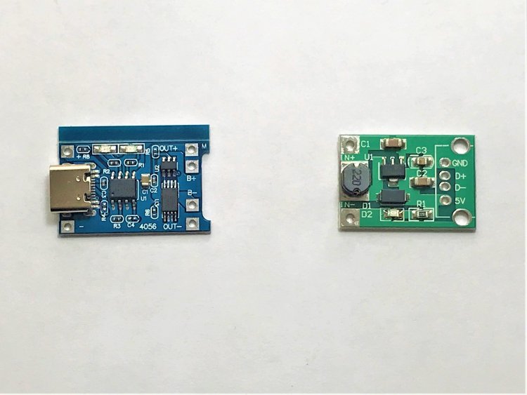 Модуль зарядки LiIo/LiPo аккумуляторов на TP4056 и схемой контроля батареи имеет защиту от переразряда / перезаряда и перегрузки по току. Зарядка аккумулятора может осуществляться как от microUSB, так и от внешнего источника питания.