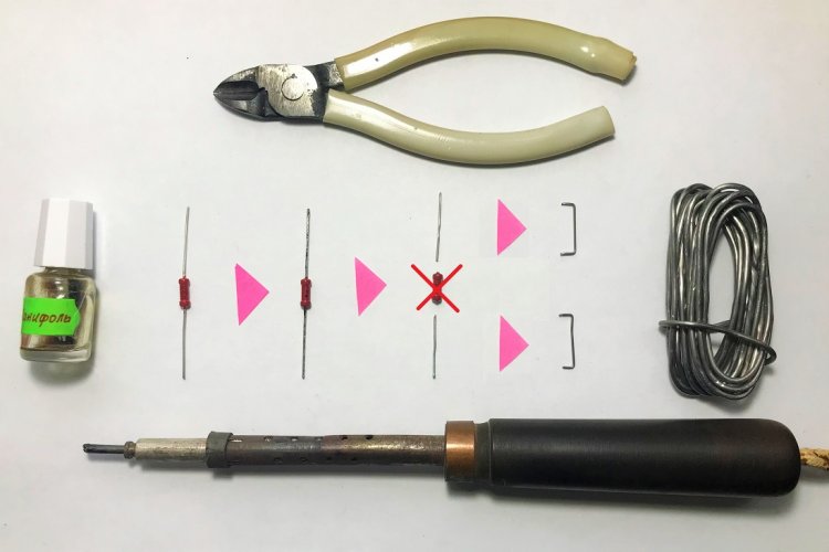 2). А чего стоит добыча перемычек из старых резисторов! Такое решение ласкает глаз и бередит душу. Впрочем, не оставаться же без дела старым резисторам. Пусть послужат перемычками.