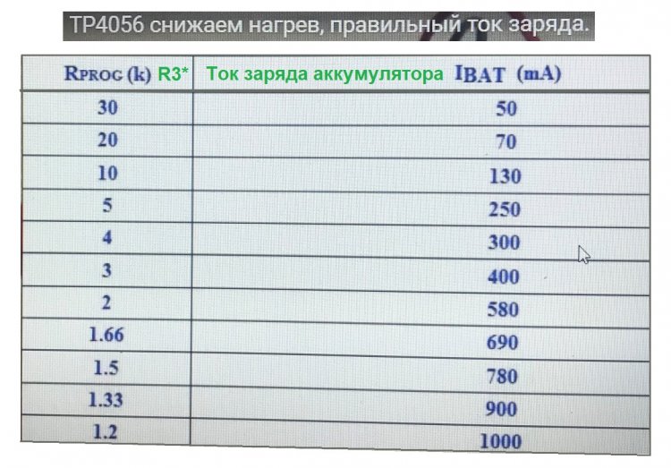 Обычно для зарядки Li-ion аккумуляторов используют ток зарядки равный половине численного значения ёмкости или менее (0,2 … 0,5 С). А чтобы использовать модуль для зарядки аккумуляторов малой ёмкости следует подобрать сопротивление резистора R3 в соответствии с таблицей (см. рисунок 1Б). Для этого R3 заменяют подстроечным резистором с номиналом до 33 кОм. Регулировать зарядный ток (заменив R3 подстроечником) можно во время заряда GB1.