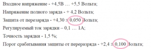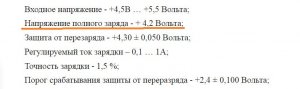 Защита от перезаряда - +4,30 ± 0,050 Вольта;