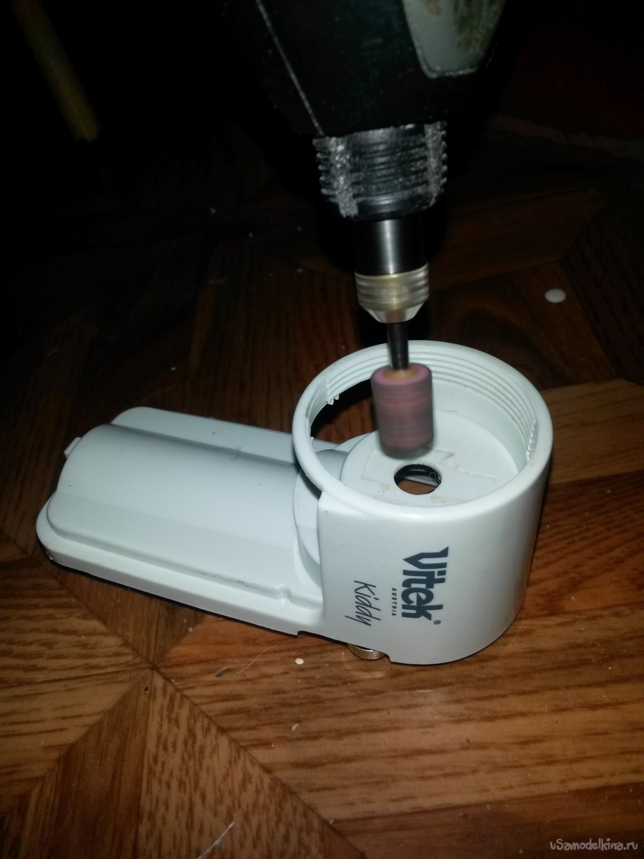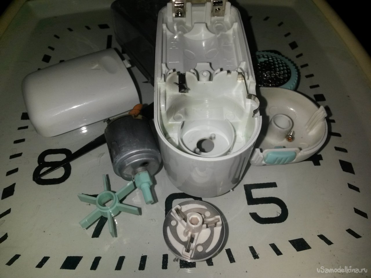 А теперь коротко о сборке устройства: Разбираем бритву на "черепки", из нужного оставляем только корпусные детали. Двигатель ,ножи и крыльчатку выбрасываем.