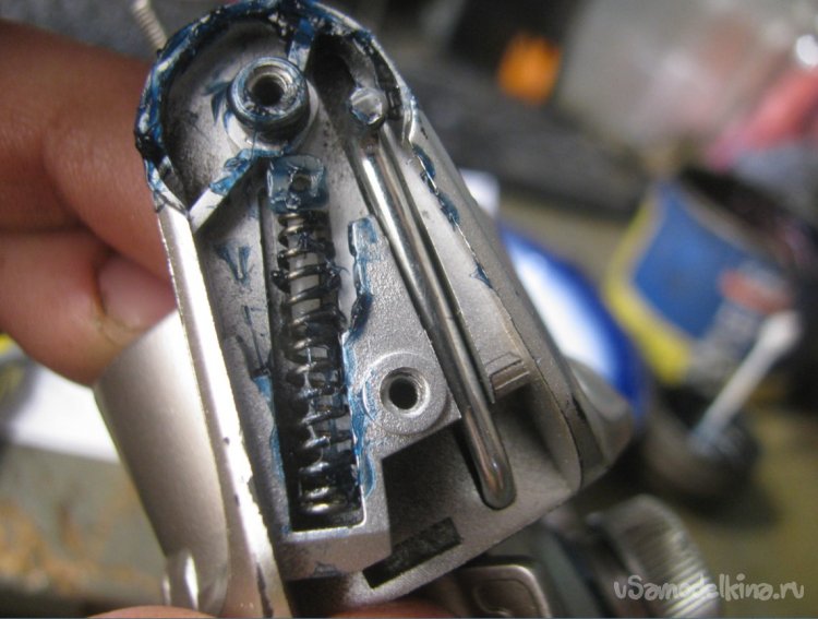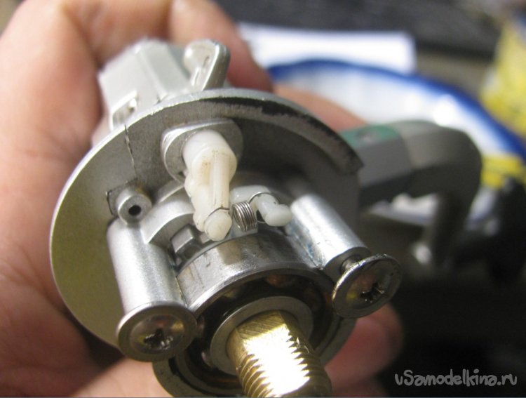 Он тут как на нормальных катушках, выполнен в виде кривошипно-шатунного механизма. Все детали этого узла сделаны из металла.