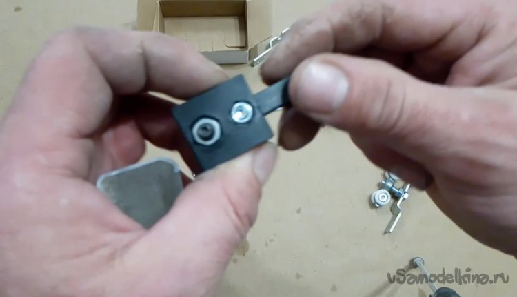 Сам механизм состоит из двух кареток, двух упоров-ограничителей и двух нижних упоров: