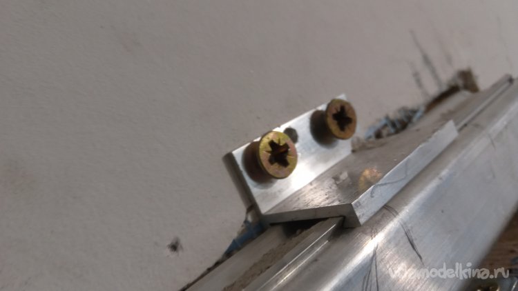 Маскирующий наличник я решил закрепить при помощи таких-же уголков. Благо, у меня остался их комплект от двери в тамбуре, где они не были нужны. Так как пазы в рельсе симметричны, то уголки можно закладывать монтажной плоскостью в обе стороны Но, если я вставлю уголки в рельс до монтажа, то не смогу потом прикрутить к ним наличник - расстояние от них до стены будет 30 миллиметров всего! Туда не влезешь никаким инструментом!!! А, ясли прикручу сначала к наличнику, то не смогу вставить в пазы рельса - будут мешать те уголки, на которых он уже висит!!!)))) Их же надо чередовать.