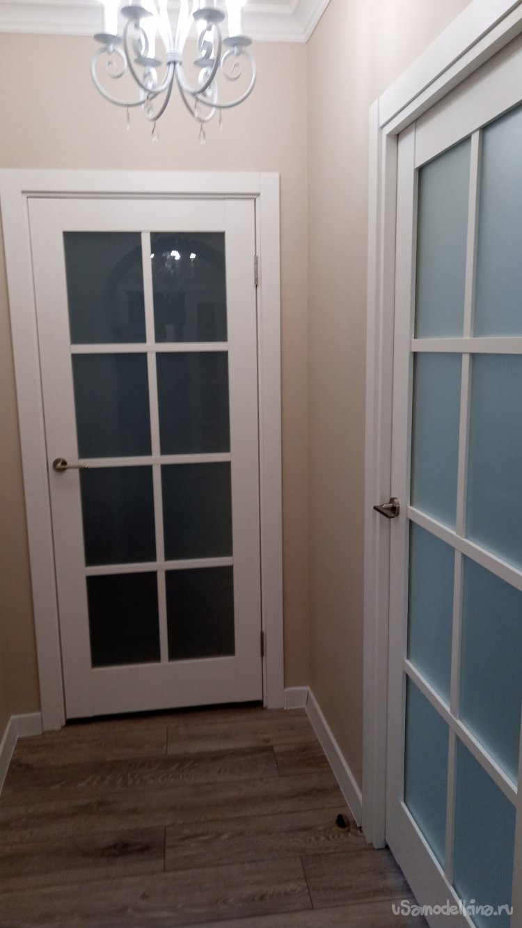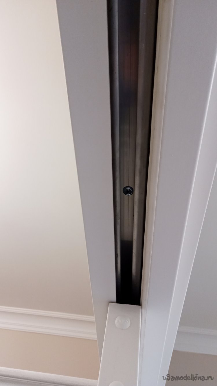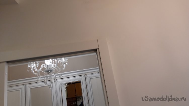 С внутренней стороны, конечно, видно, что это - не распашные, а откатные двери. Никуда от этого не уйдёшь. Можно, конечно, устроить фальшпанель из гипсокартона на всю стену, и тогда она скроет откатывающуяся дверь. Но уж больно большой объём работ. Я решил, что ничего особо страшного нет и так. Не сильно они портят внешний вид комнат, откатываясь одна за шкаф