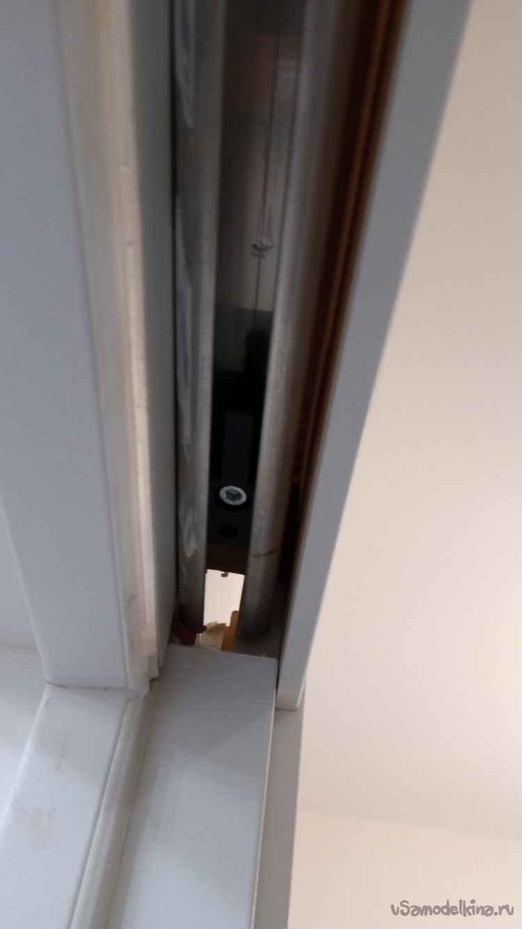 Туда-же вставляются и ограничители хода, имеющие захват с регулируемой силой, для того, чтобы дверь в конце хода "защёлкивалась":
