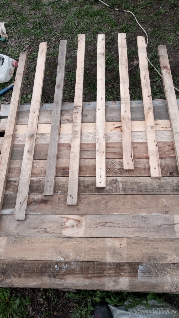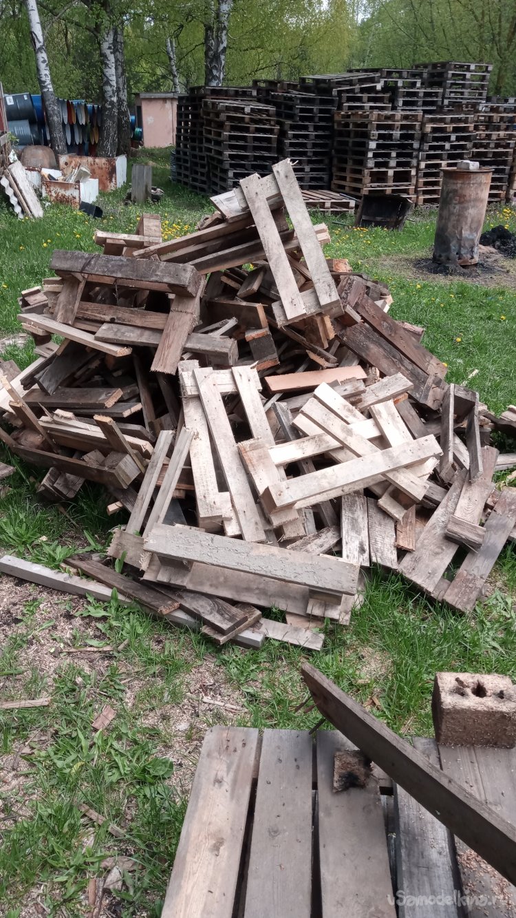 Первым делом я, при помощи кувалдочки (одна из них, всегда ездит у меня в машине), разбил на доски несколько поддонов, после чего, при помощи гвоздодёра, удалил из них гвозди (Эта операция заняла наибольшее время):