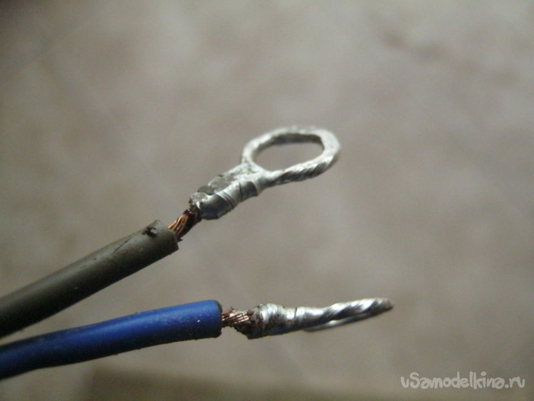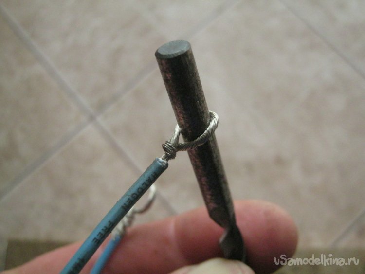 Фото 14. Зачистил конец монтажного провода от изоляции, на хвостовике сверла, такого же как и клемма диаметра, сформовал петлю.