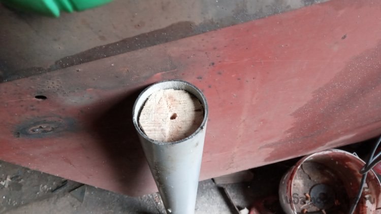 Чтобы закрепить шпильку в торце трубы, решил использовать деревянные пробки. На гдаза попался какой-то старый брусок: