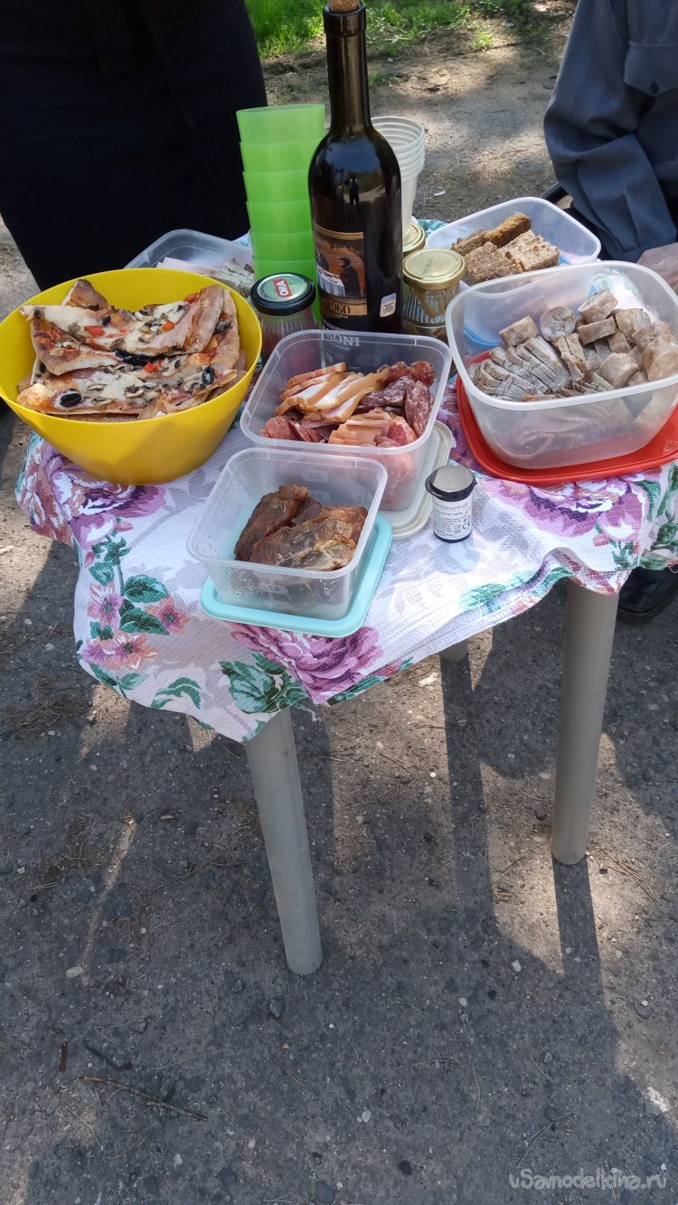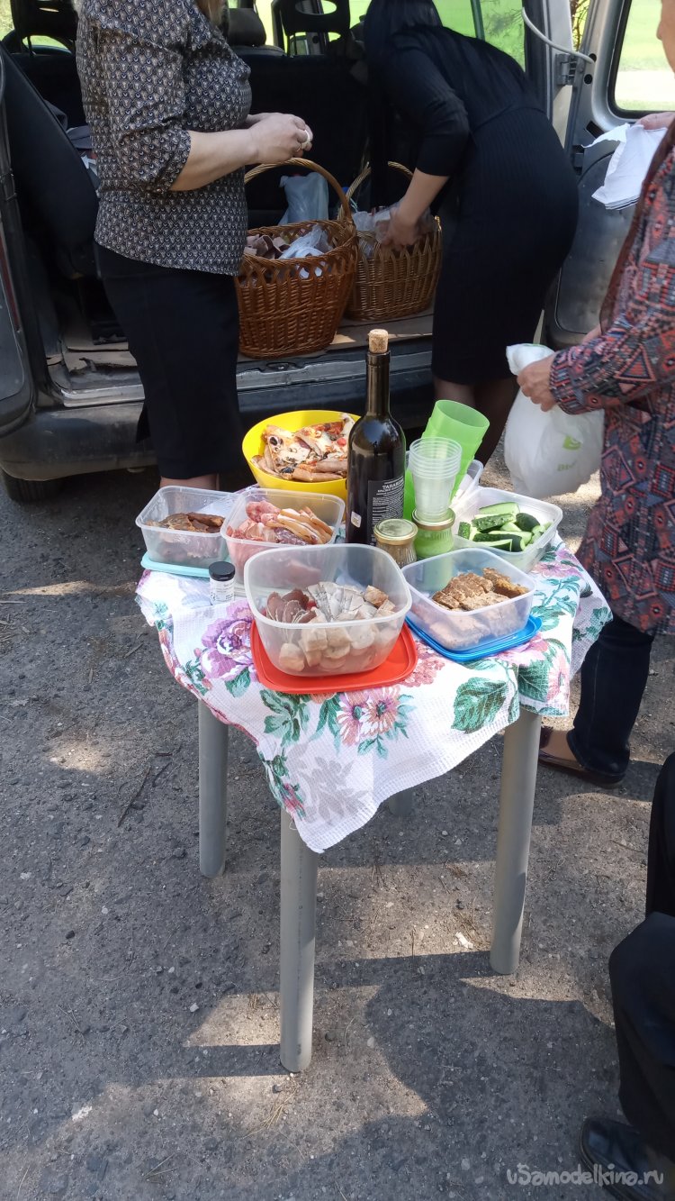 На завтра, когда остановились перекусить, все оценили удобство. Реально значительно удобнее, чем есть с багажника, подходя по очереди.)))