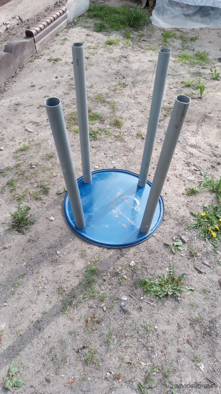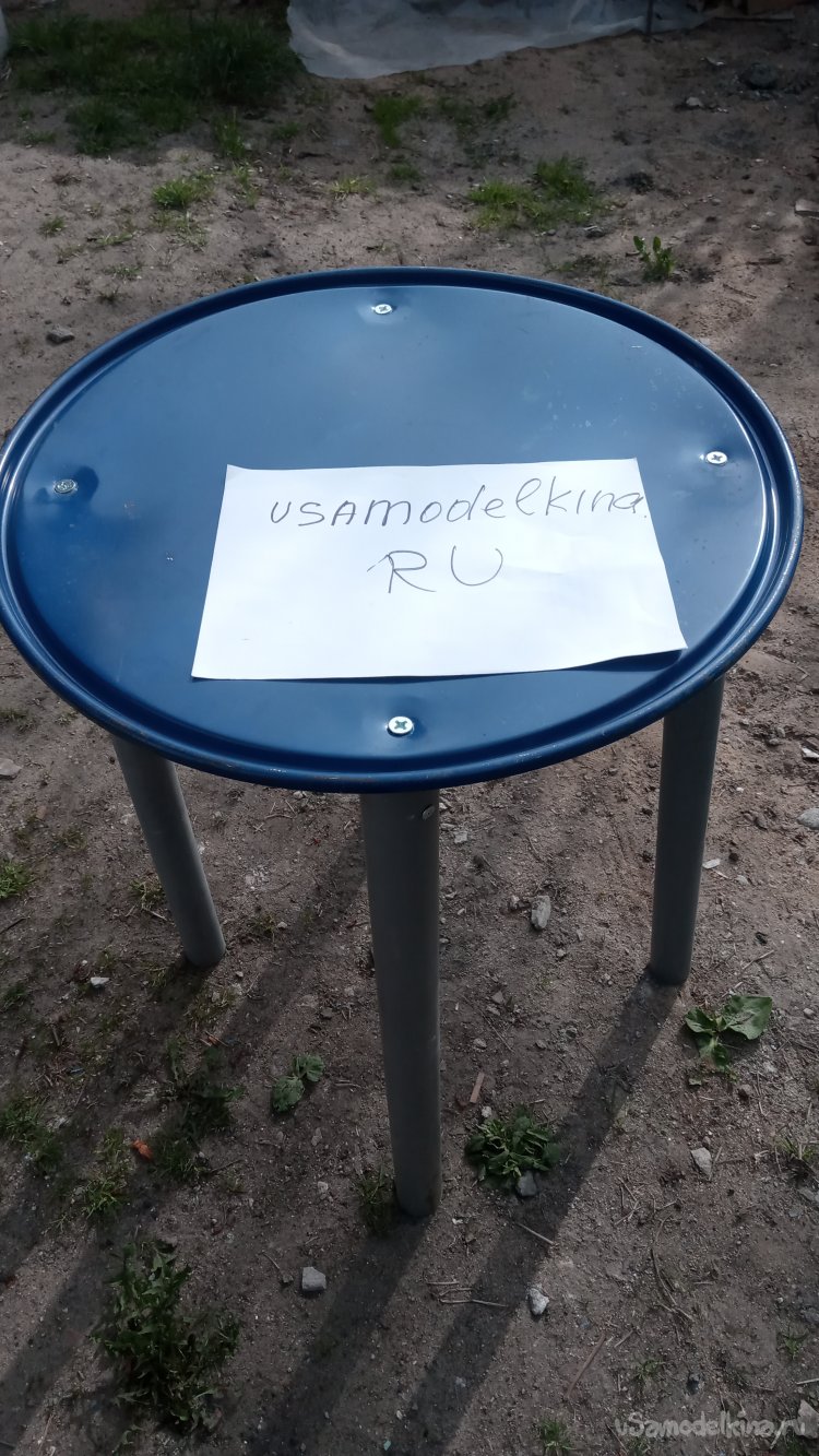 Так повелось, что с нами ездят и мои дочка (теперь уже с зятем) и тёща с тестем. Ездим в последнее время на двух машинах. Как правило, каждое это мероприятие занимает у нас весь день. И поэтому, сложилось так, что, по выезду из родной деревни на Брест, на трассе мы всегда останавливаемся в уютном месте для отдыха, чтобы перекусить. Это тоже уже стало обычаем.))). То-же самое мы делаем, спустя пару недель, когда приезжаем уже не наводить порядки, а посетить могилы на Проводы. Я, как правило, еду не на легковой машине, а на минивэне. Так и инструмент загрузить удобнее с собой, и потом, открыв заднюю дверь, сдвинуть инструмент вперёд и накрыть в багажнике "стол". Но вот, в этом году мой тесть, хоть и поехал, но уже, передвигаясь с палочкой.. (Никто его работать, конечно, не заставлял))) Поехал ради "культурной составляющей). Поэтому я взял с собой стул. Стоять ему тяжело. А так он может посидеть и во время обеда, и у могил, "руководя нами")))). И во время обеда выяснилось одно неудобство, которое его сильно смутило. Если поставить стул у открытой задней двери минивэна с "накрытым столом", то остальным уже весьма трудно подойти. Его отодвинули и носили ему еду... И вот, в субботу после Пасхи, вечером, когда мы созванивались, согласовывая завтрашнюю поездку на Проводы, меня посетила мысль сделать "по быструхе" столик, который легко всять с собой. Это позволило бы и тестю сидеть у стола и остальным, здоровым, стоять там при этом. Из чего сделать - вопроса не возникло. Уже давно вынашиваю мысль сделать столики в сад из крышек от металлических бочек, которых у меня много. Только сделать "на постоянку", не разборные, с красивыми ножками и красиво покрашенными. А сейчас мне нужен "быстрый проект". И я стал действовать. Через полчаса у меня был готов столик.