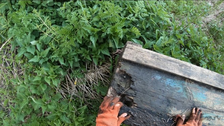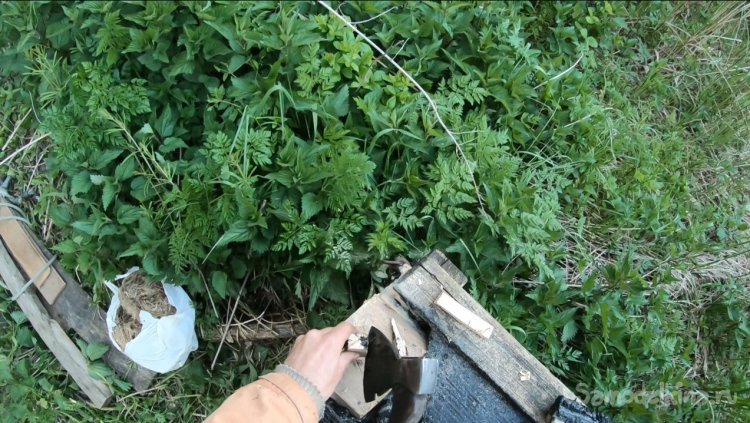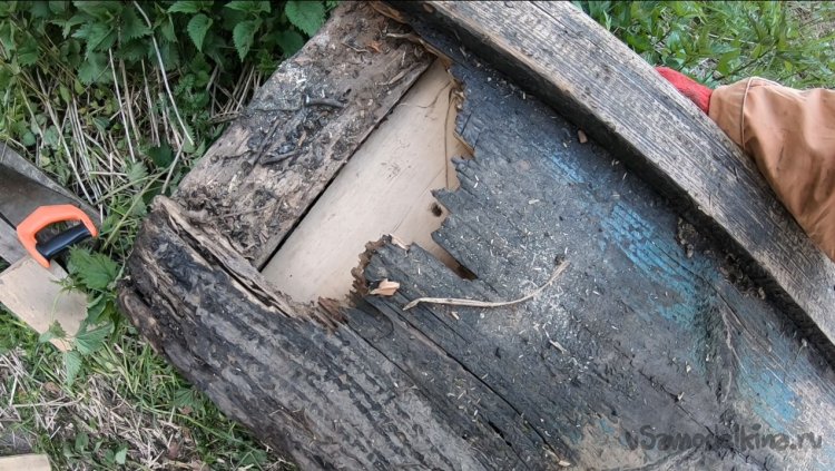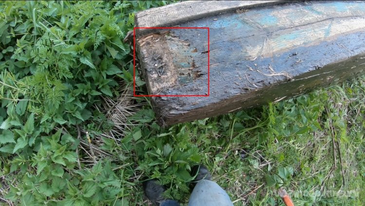 Постучал по носовой части молоточком, оказалось, доска там совсем струхла, там развелись муравьи и ускорили повреждение.