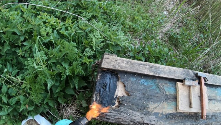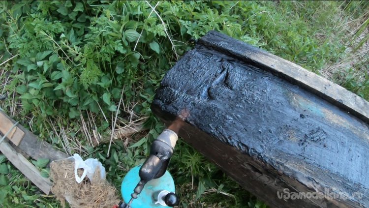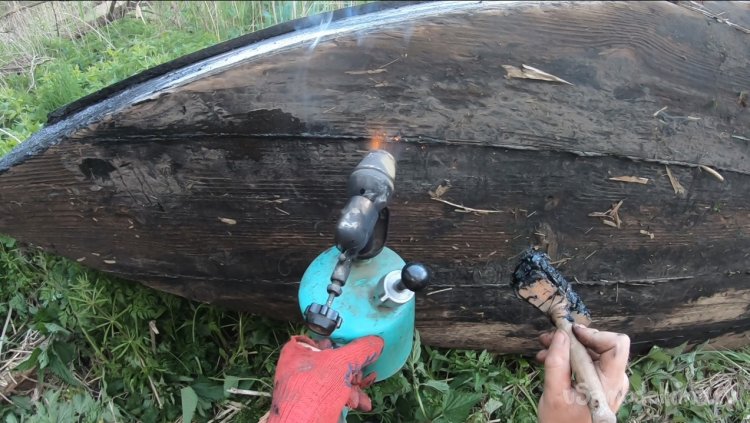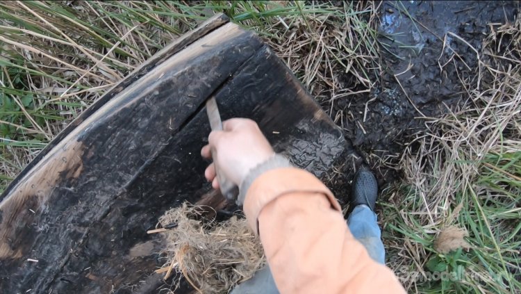 А в задней части там вылетела пакля вместе со смолой, в итоге появилась большая щель.