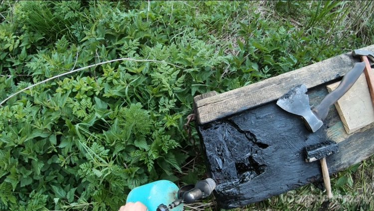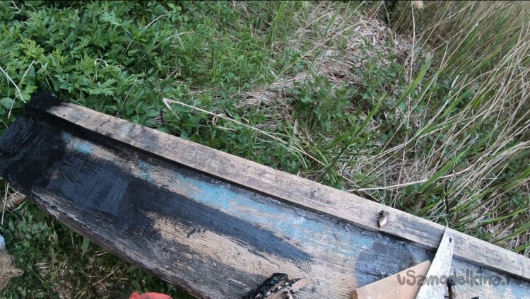 Вот и все, промазал все сверху смолой для защиты от воды и герметизации. Место обработки прогрел паяльной лампой для просушки и лучшего растекания смолы. В итоге прибил сверху еще одну доску, тем самым перекрыв стык и укрепив это место.