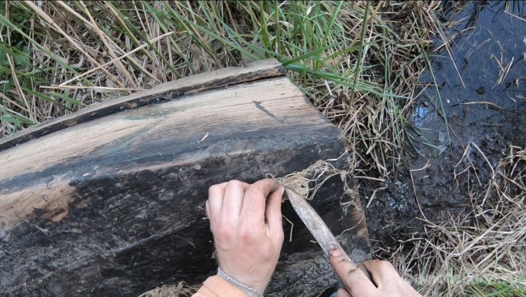 Сделал тестовый заплыв, чтобы посмотреть, есть ли еще протечки. Небольшие дырочки в лодке имеются, но вода набирается не существенно. В идеале ее нужно будет просмолить полностью, это единственный вариант исправить такие проблемы.
