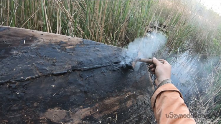Ну что ж, лодка исправна, но еще нужно сделать весла, поскольку вот так плавать с палкой это вообще не вариант, неудобно, шумно для рыбы и мокро!