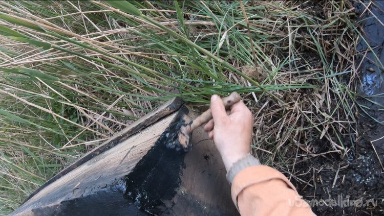 Сзади лодки набил в щель паклю и хорошо промазал сверху смолой. Также промазал смолой заднюю часть, замазав все щели. Вот и все, теперь и тут протечек не будет, а в других местах протечек я не замечал.