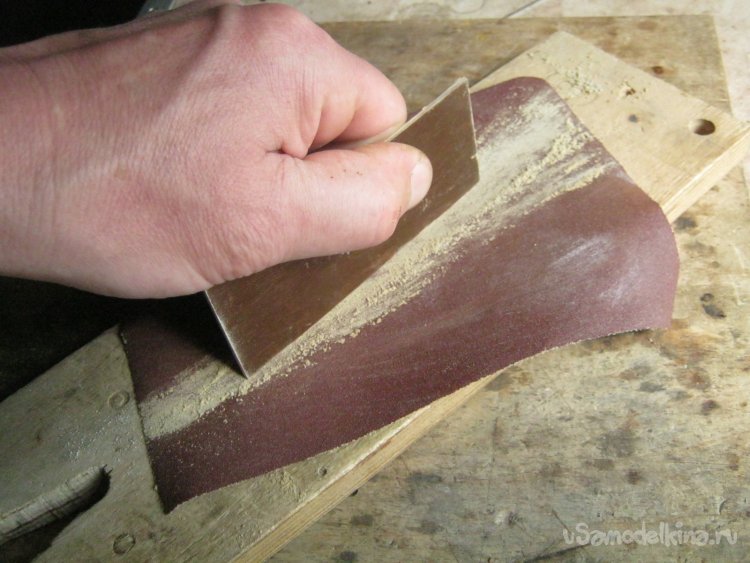 Фото 3. Заготовку разметил и выпилил, торцы ФСТ выровнял на средней наждачке положенной на ровную поверхность.