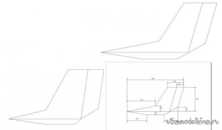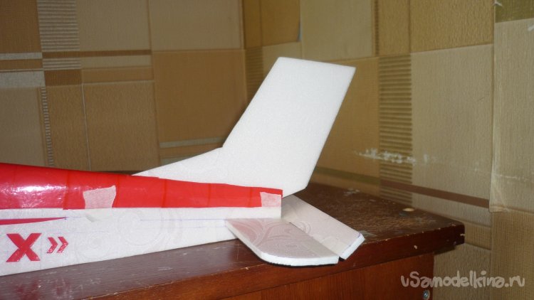 Вырезал заготовки для стабилизатора, вырезал для него место в хвостовой части боковых стенок фюзеляжа, примерил.
