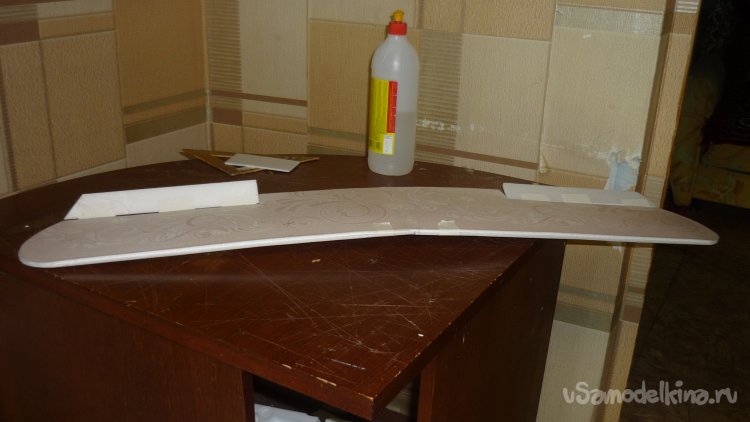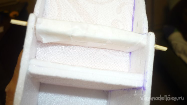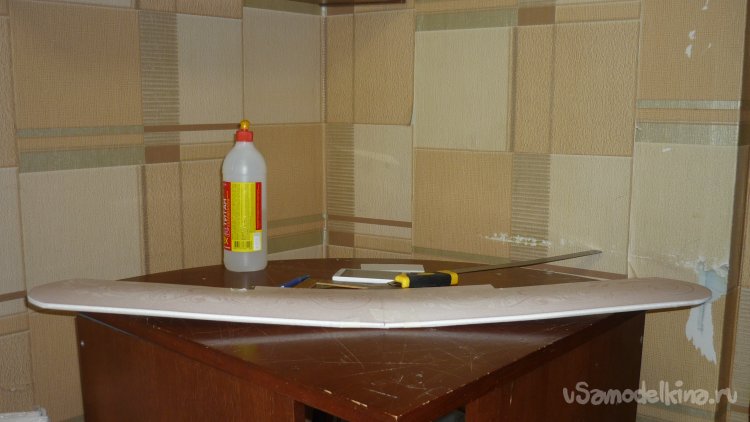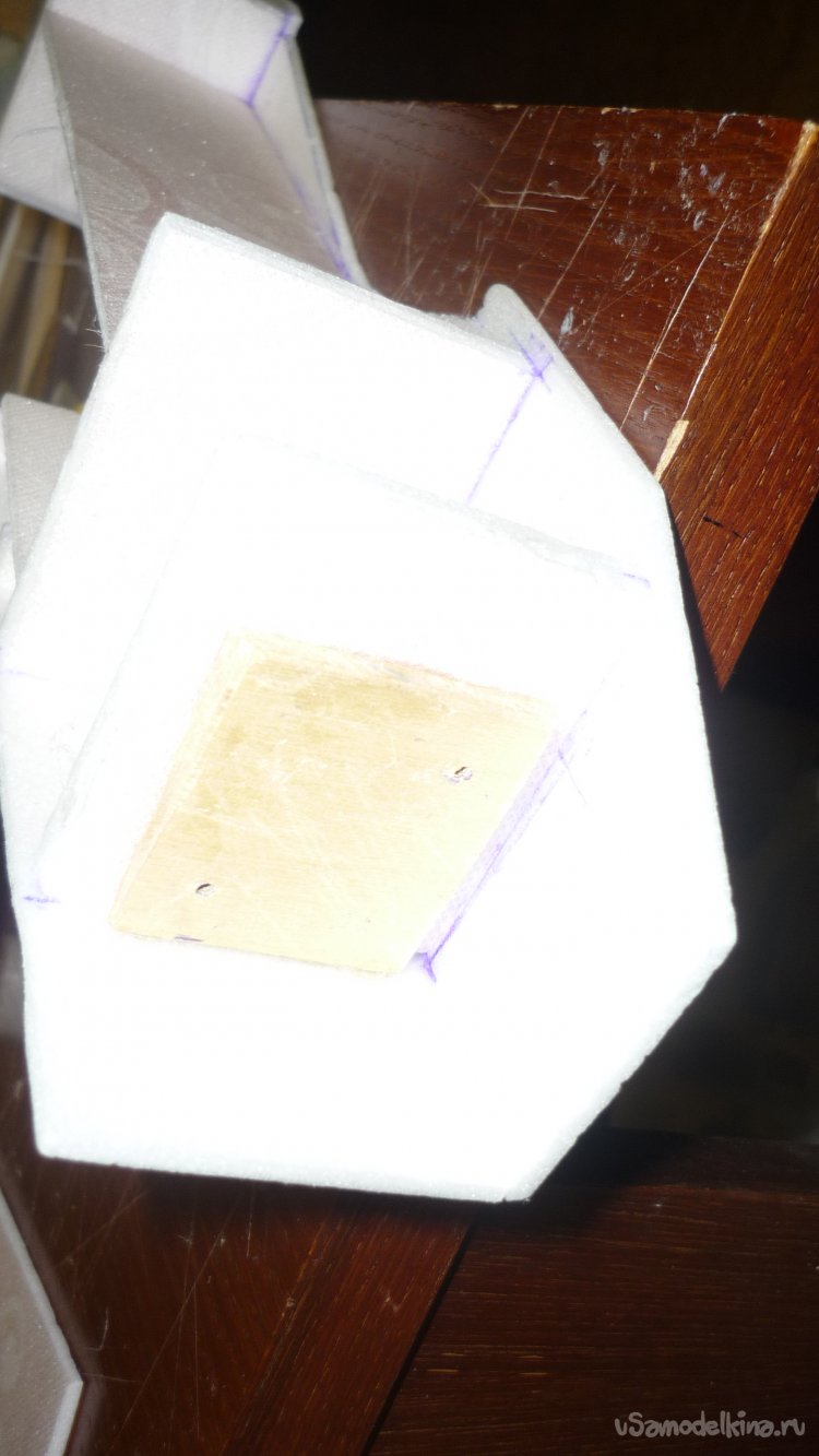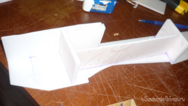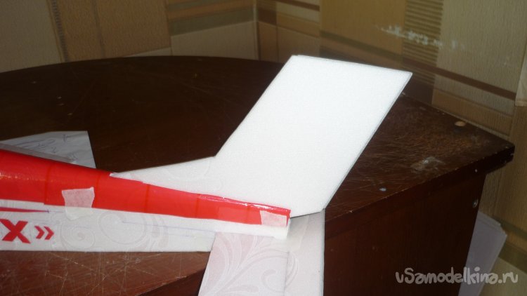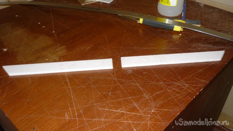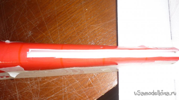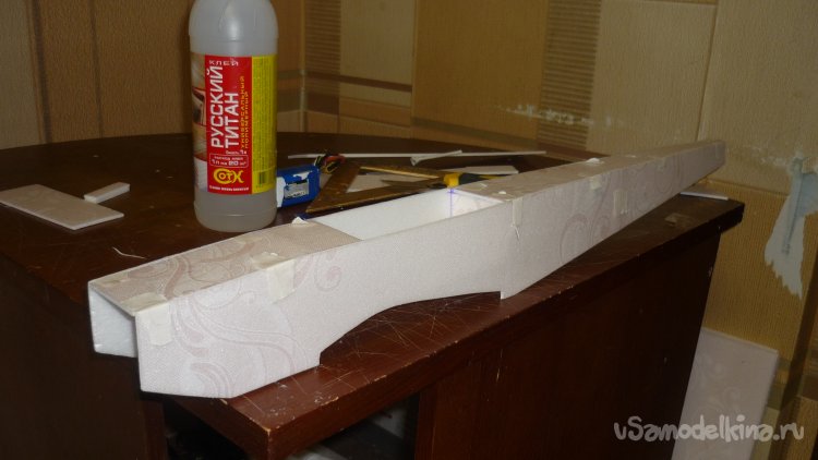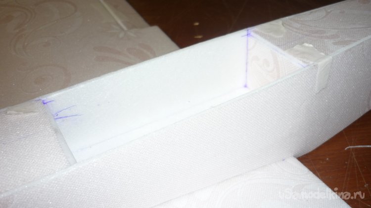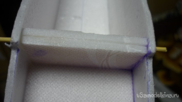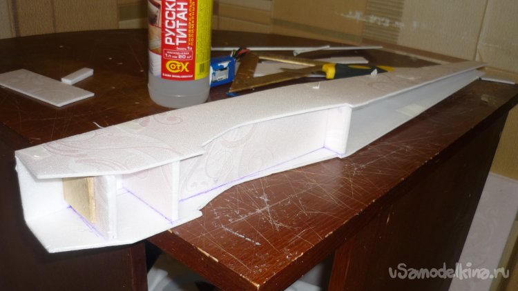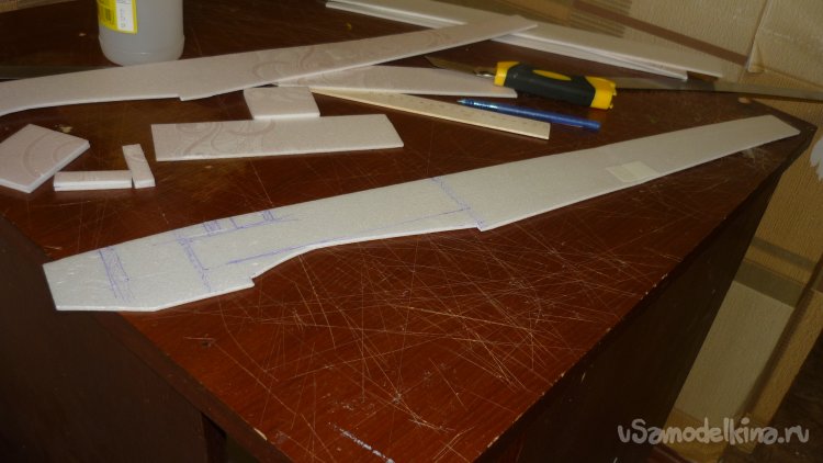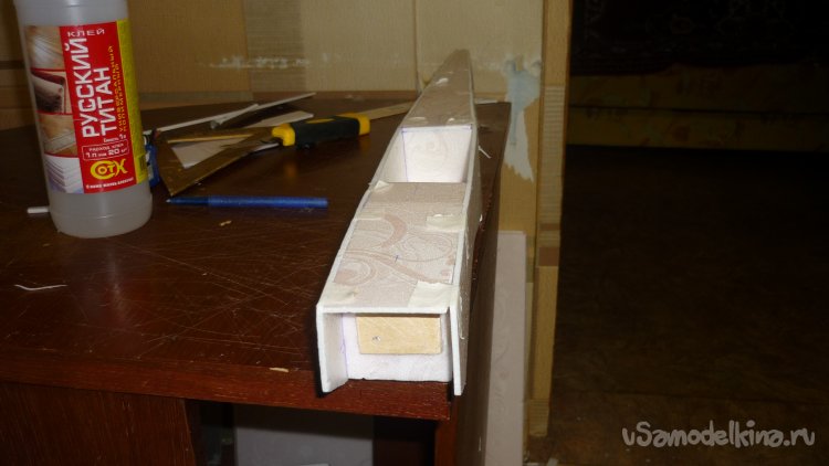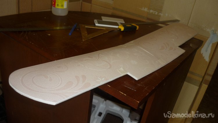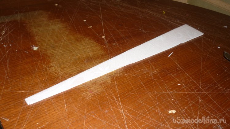 Что бы увеличить толщину шпангоута вырезал полоски потолочной плитки. Это я решил сделать, что бы не было резкой грани на верхней обшивке крыльев.