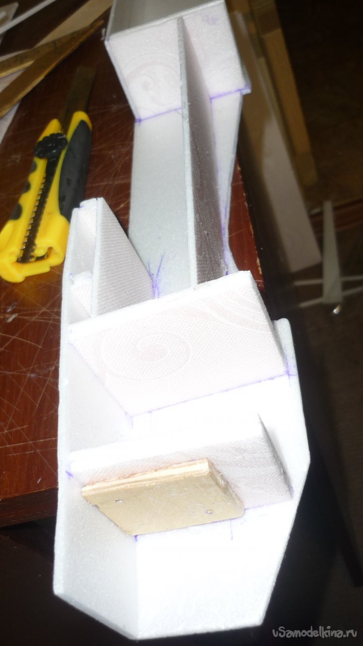 Вырезал кусочки 3 мм. фанеры для установки шасси, вклеил.