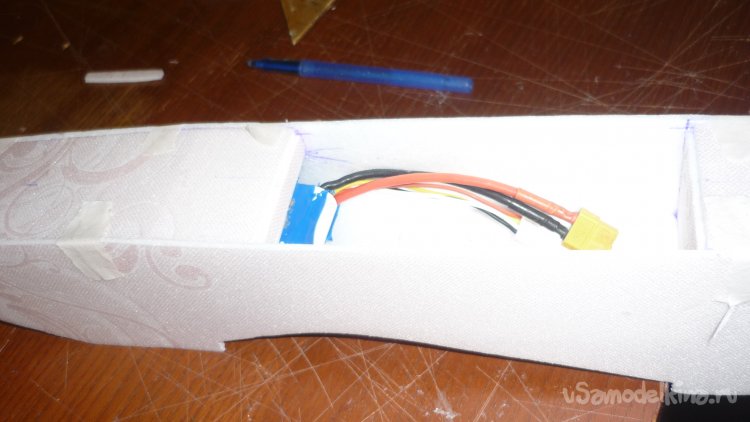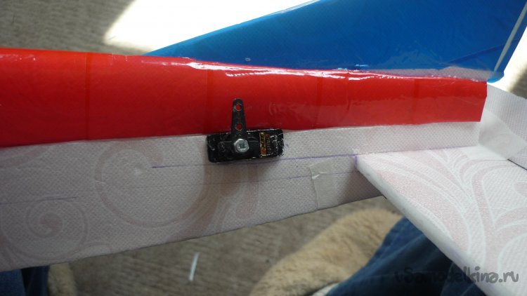 Разметил места установки сервомашинок на крыло для управления элеронами, сионтировал.