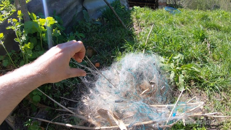 Нашел в кустах старую запутанную сетку, из нее можно сделать такую полезную вещь как экран или телевизор. Подобными маленькими сеточками удобно рыбачить с берега, если рыба есть, то это верный способ ее поймать. В юности я такими сетками ловил окуня, плотву, подлещиков, ну и кончено карасей. Лучше всего в экраны идет окунь, видать ему интересно, что это такое, и он подходит посмотреть. Бывало я бросал уже безнадежно порванные экраны и в них все равно попадались окуни.