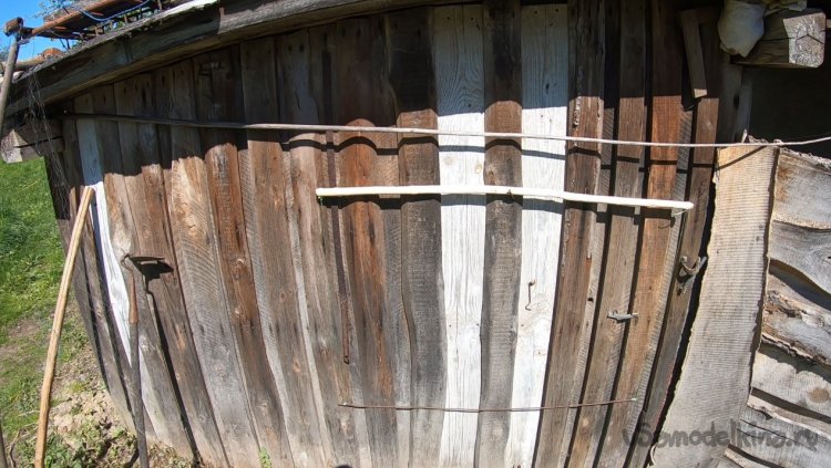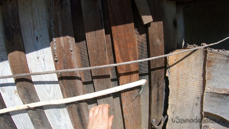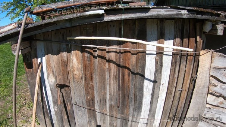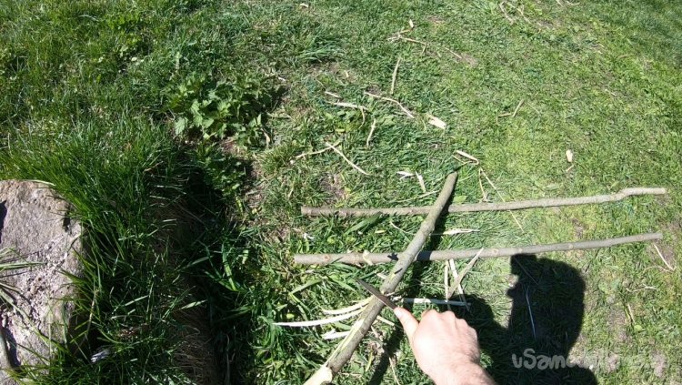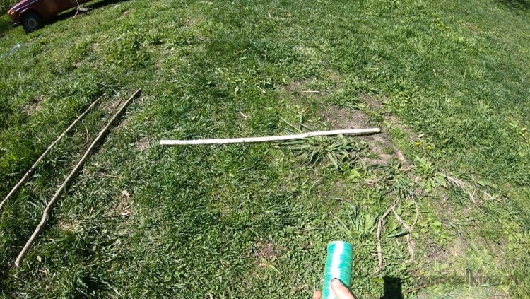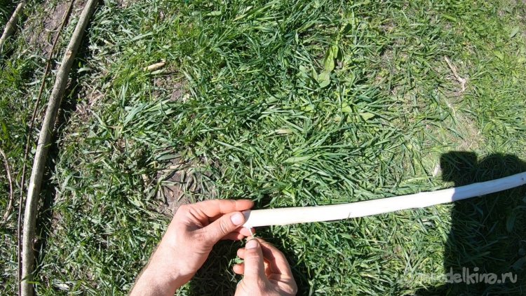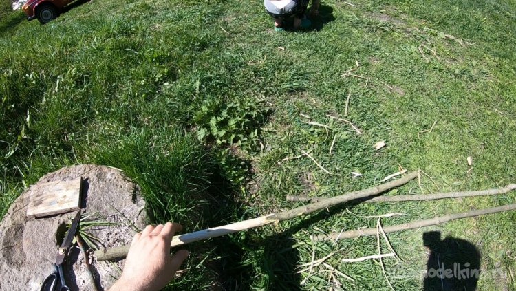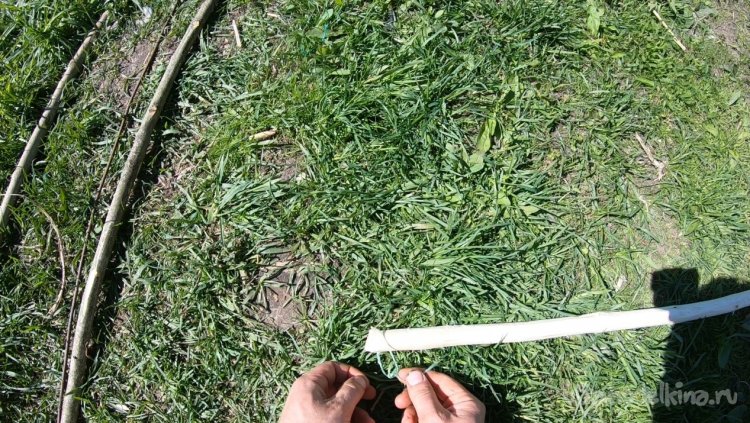 Палки у меня свежие, я снял кору и просверлил на края отверстия для удобства крепления, а можно просто сформировать ножом канавки.