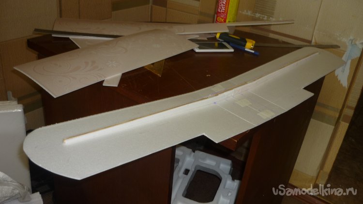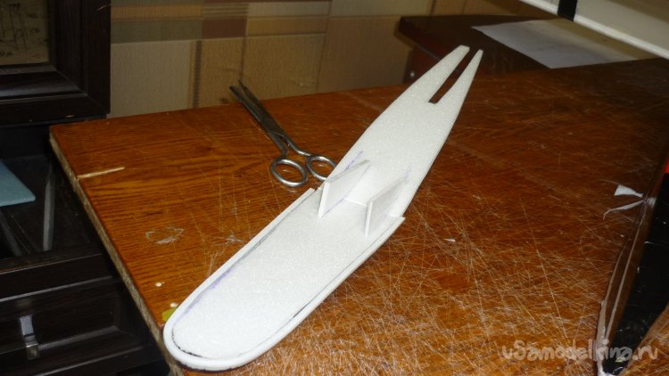 На нижней заготовке вырезал элероны.