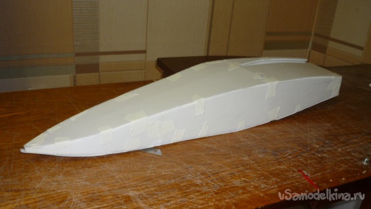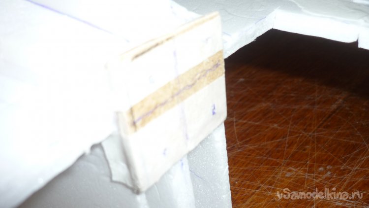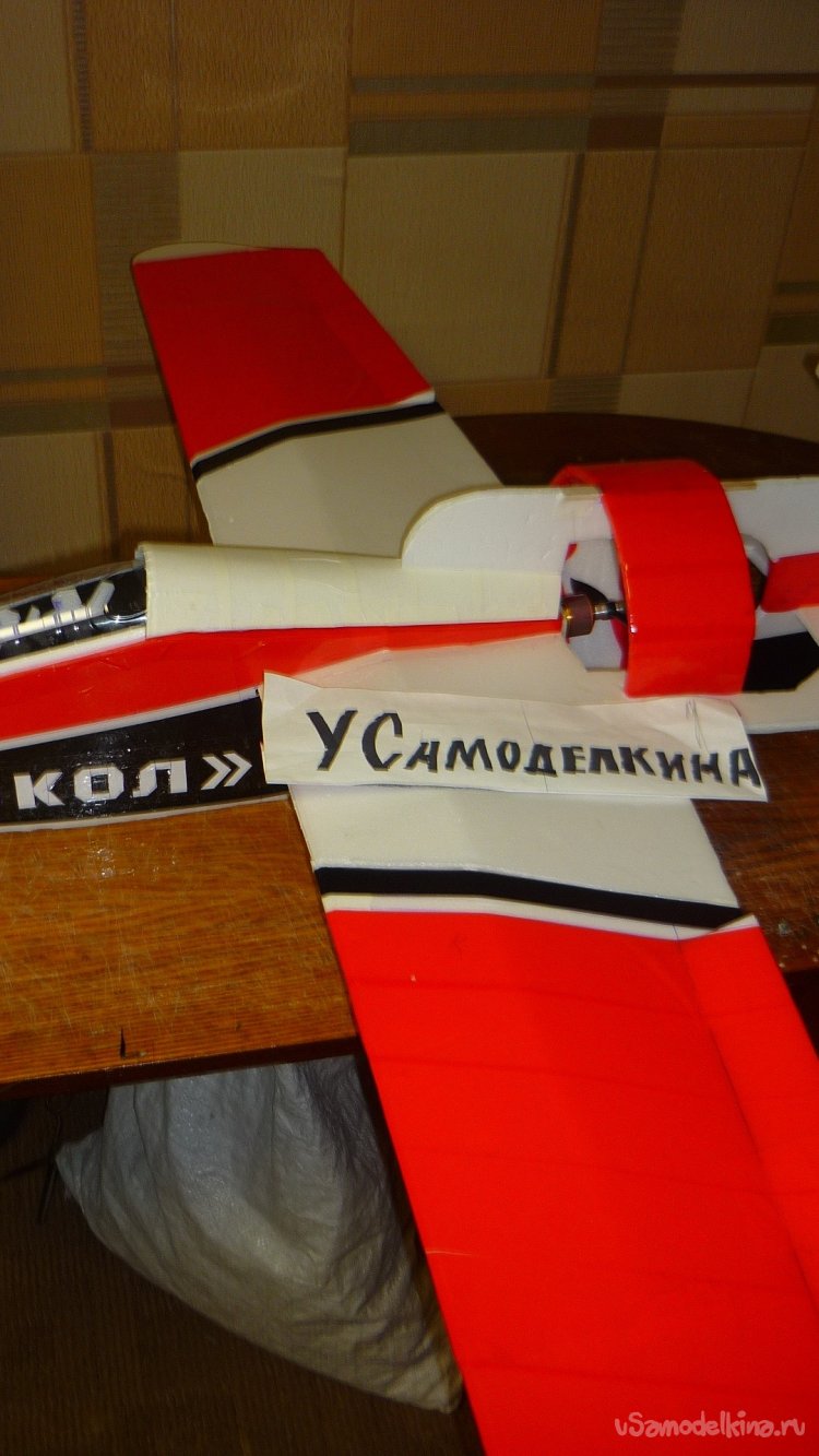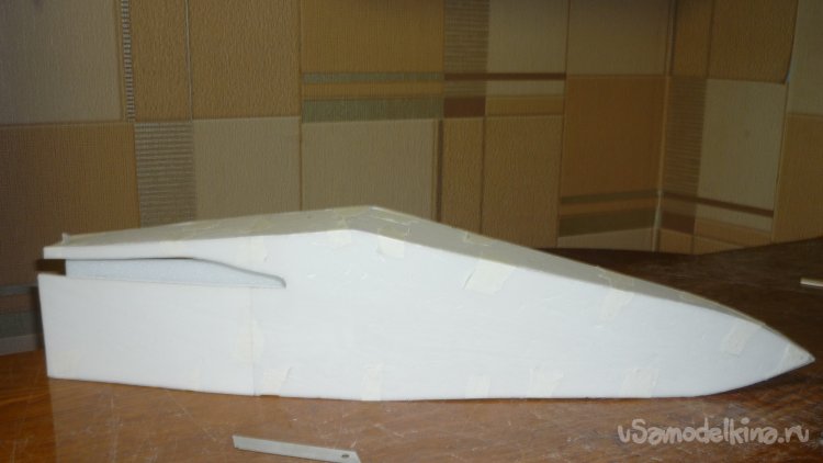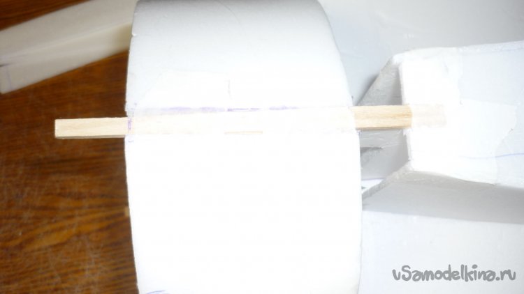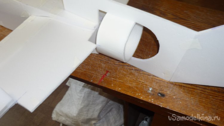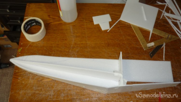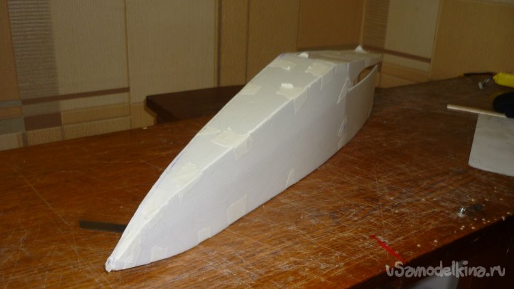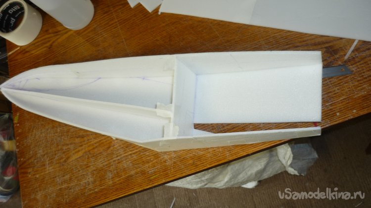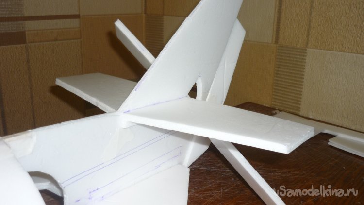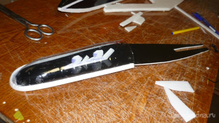 Для этого достаточно вклеить на нижнюю сторону фюзеляжа кусочки 3 мм. фанеры.
