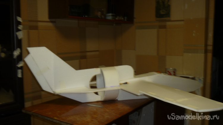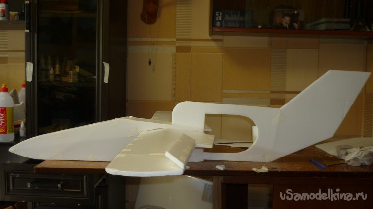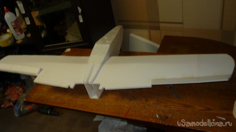 Вклеил крылья в носовую часть фюзеляжа.