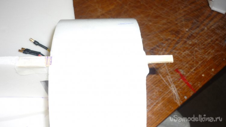 Вклеил кусочек 4 мм фанеры, на него буду крепить мотор с винтом.