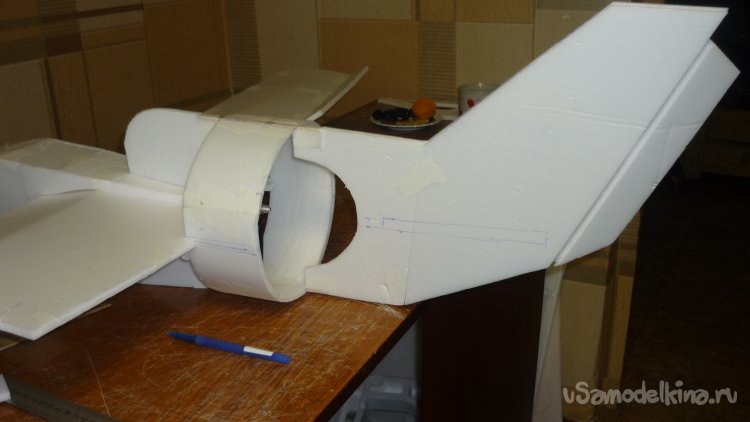 Вклеил рёбра жёсткости в хвостовой части фюзеляжа.