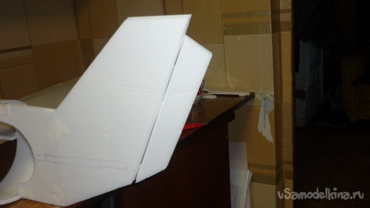Отрезал от киля руль направления, срезал переднюю кромку, навесил на бумажный, малярный скотч.