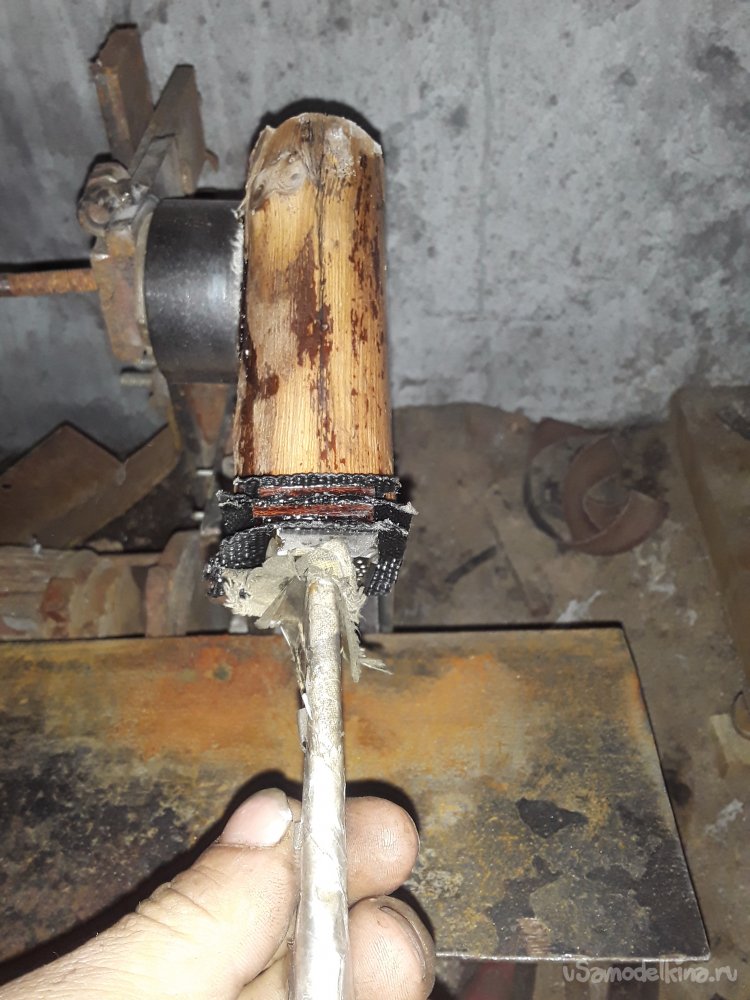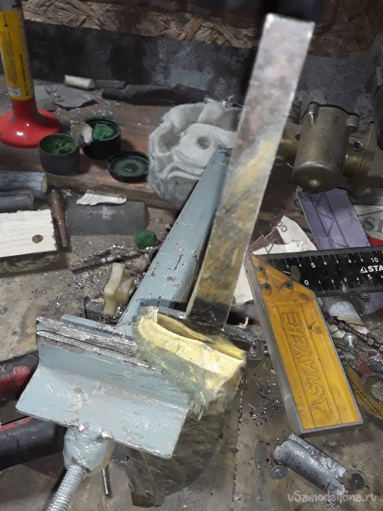 После этого зажимаю в тисках и меняя зерно наждачной бумаги начинаю полировку упора и самой рукояти пока не уберутся все грубые риски.