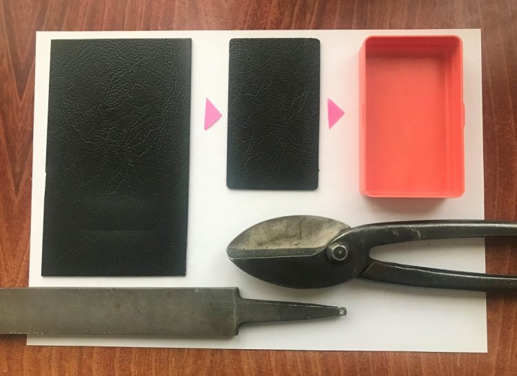 Чёрную пластиковую крышку, которая имеет толщину 2 мм, вырезаем ножницами по металлу и дорабатываем на плоском напильнике.