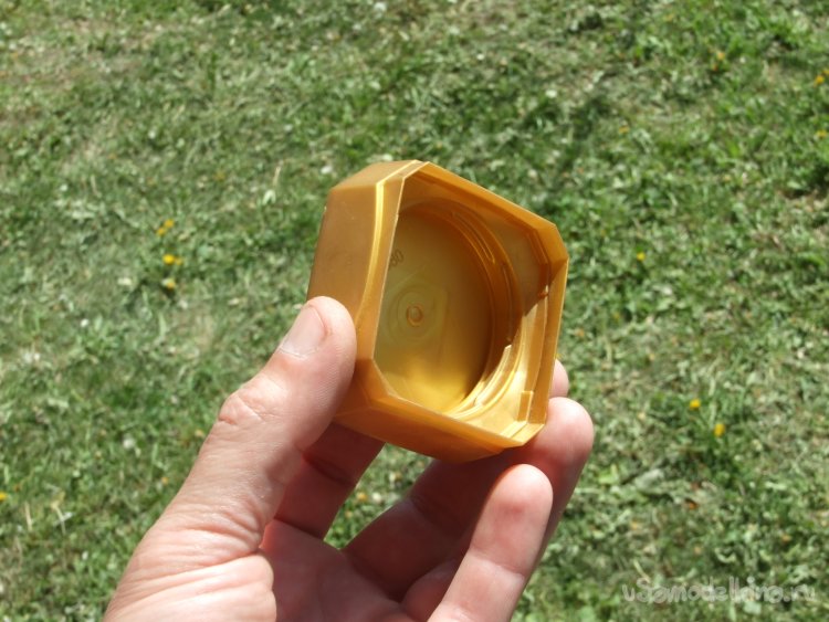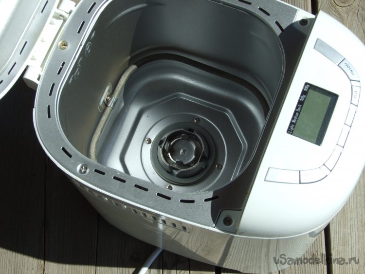 Дно хлебопечки не слишком приспособлено для любых других посторонних сосудов, из-за выступающего вращающегося узла (Фото 3), но можно его закрыть временной пустотелой площадочкой. Подобрал для нее пластиковую крышку от небольшой баночки.