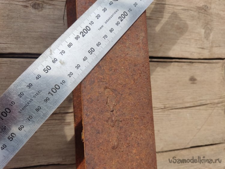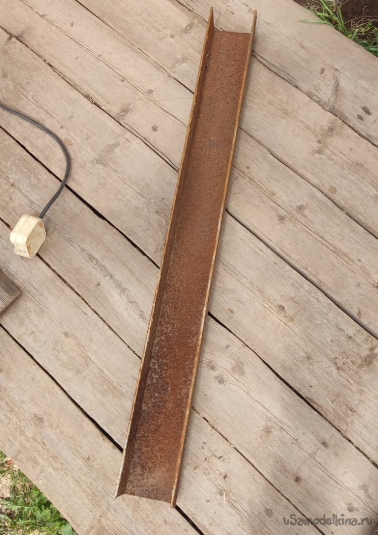 К сожалению подходящих по размеру уголков у меня не оказалось, поэтому данное изделие буду создавать из остатков швеллера, который достаточно толстый, что положительно влияет на прочность всей конструкции.